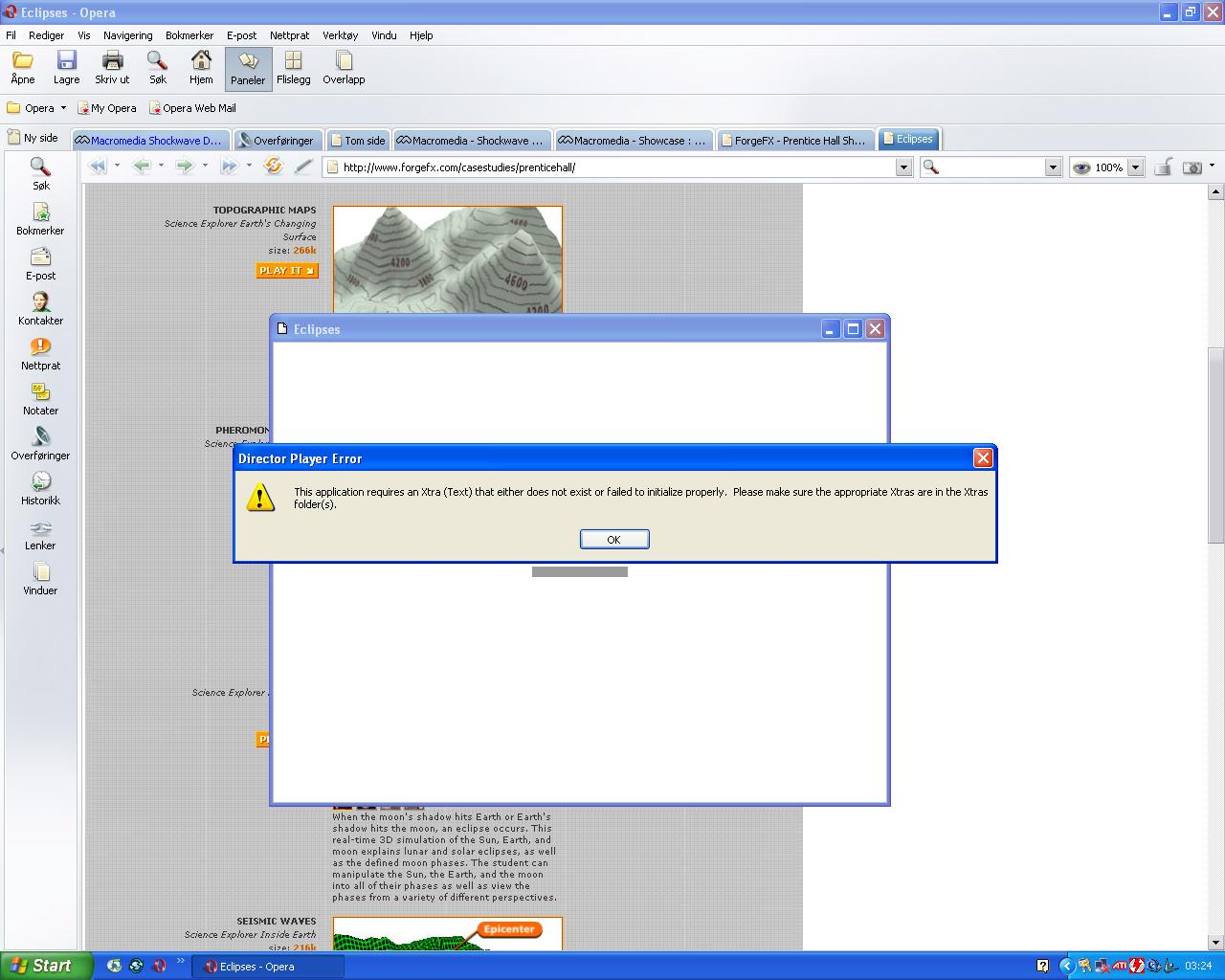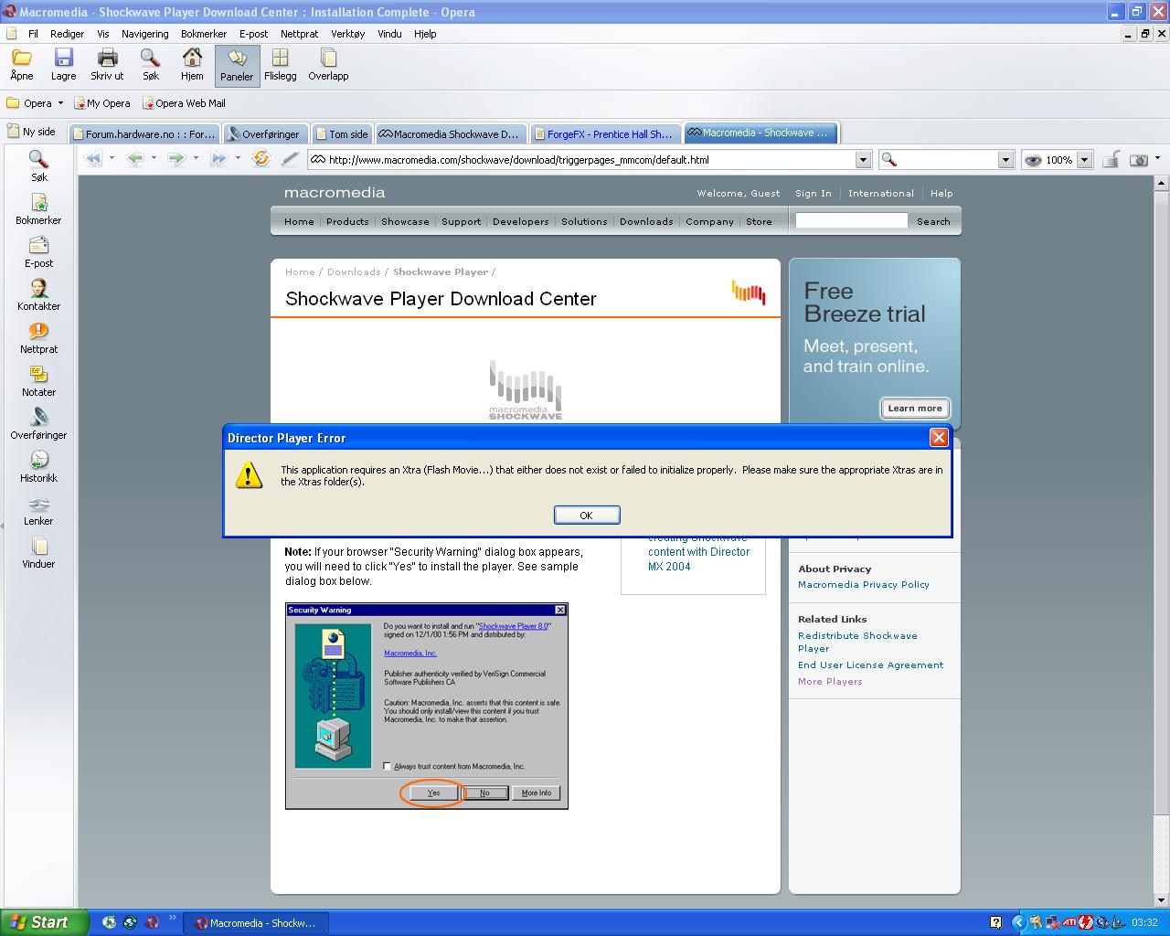 Marcelo Skrevet 25. mars 2005 Skrevet 25. mars 2005 (endret) Hei! Jeg har får en feil når jeg prøver å se en flashfilm i opera explorer etter at jeg installerte Macromedia Flashplayer. Det står noen om noen Xtras så jeg må installere eller feilet å installere Endret 25. mars 2005 av Marcelo