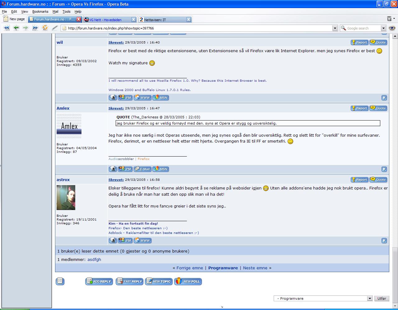 K.. Skrevet 28. mars 2005 Skrevet 28. mars 2005 Opera Er superfornøyd med den! Mange greie funksjoner du blir helt forelsket i når du først får brukt dem litt!