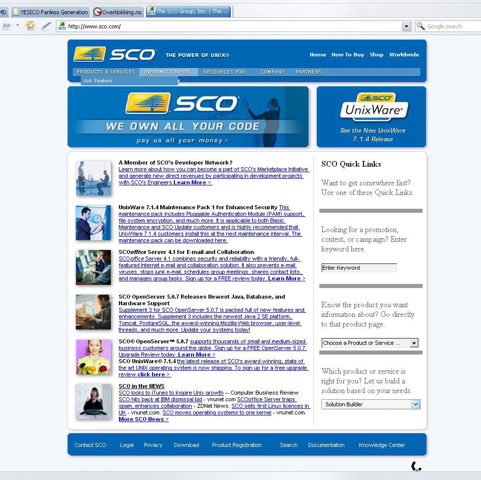 jorgis Skrevet 22. september 2007 Skrevet 22. september 2007 Nå som SCO i praksis er long gone (skal fjernes fra NASDAQ snart, og sikker konkurs bare er noen advokater unna), kan det vel være fint å mimre litt? De fleste husker vel reaksjonen på SCOs aksjon mot linux? Morsomste defacing jeg har sett på lenge: