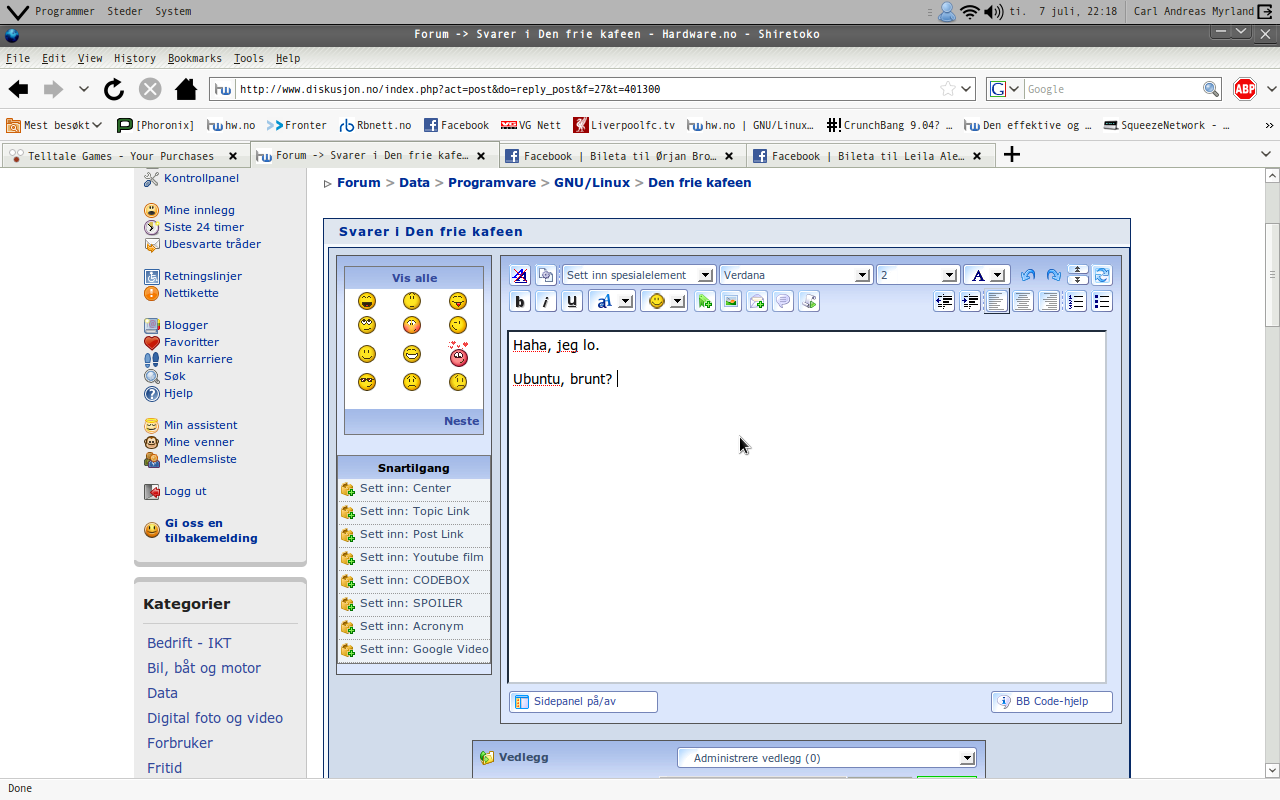 DeadManWalking Skrevet 8. juli 2009 Skrevet 8. juli 2009 Haha. Føler meg små skitten her jeg sitter å kjører linux. Ser for meg Richard Stallman på Guantanamo.