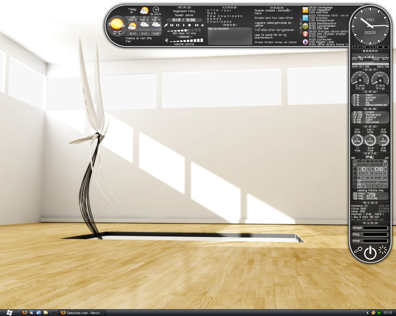 exmith2k Skrevet 1. mai 2005 Skrevet 1. mai 2005 Vil modde skrivebordet mitt med samurize, men så lurte jeg på om jeg kunne laste ned et helt ferdig laget samurize "bar", med f.eks klokke,cpu,harddisk info, tvkanaler, uptime osv på.. Sånn jeg slipper å legge til config filer og strese selv....... F.eks den svarte greia på bildet: !!! bildet !!!! Prøvde å finne ferdig lagte på denne sia men fant ikke noe: http://www.samurize.com/modules/mydownloads/ Noen som kan med Samurize og som kan hjelpe meg?
