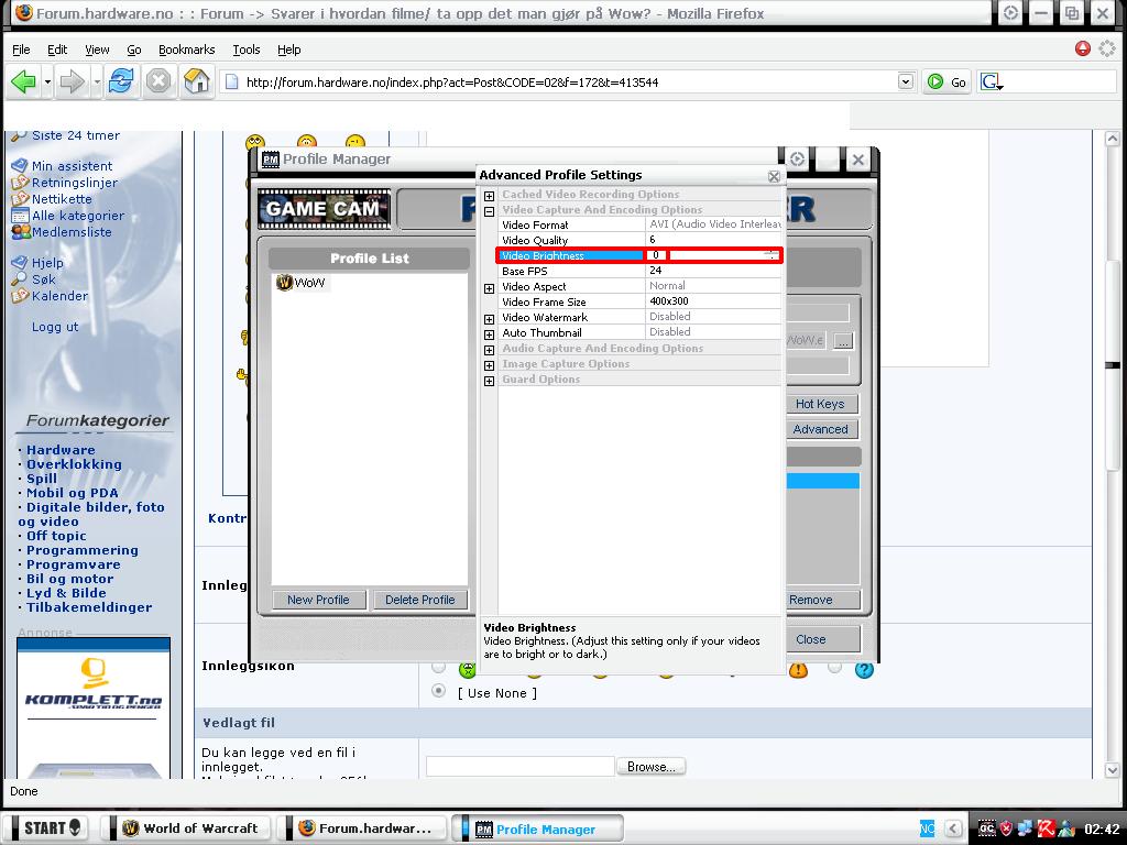Colamann Skrevet 8. mai 2005 Skrevet 8. mai 2005 (endret) Jeg har et problem. Det blir altfor mørke videoer når jeg tar opp wow filmer, jeg prøver og stille opp video brightness, men når jeg gjør det, så skjer det ingenting. Og når jeg går tilbake etter og ha tatt opp en video så står den på 0 igjen. Endret 8. mai 2005 av Colamann