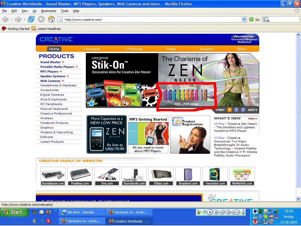 storken Skrevet 7. juni 2005 Skrevet 7. juni 2005 (endret) men her er det noe MUFFINS!!! på spørsmål 3 så står valgalternativene på 125sanger, 1250sanger, 12500sanger. men jeg gikk inn på sidene til creative og oppdaget noe: dere må se på screenshoten jeg har tatt der står det i reklamen 5 gb 2500songs!!!! vet ikke hvordan jeg legger et bilde slik at det vises men jeg har lagt det som et vedlegg se inne i det røde rektangelet!!! synes denne konkurransen kan rettes litt på for igjenn å bli lagt ut!! Endret 7. juni 2005 av storken