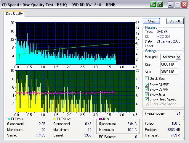 Framerate Skrevet 1. juni 2005 Forfatter Skrevet 1. juni 2005 (endret) Da va første plata brent Verbatim DVD+R 16x (mcc004) brent på 12x for å forhindre et kvalitetsproblem som oppstår ved brenning på 16x Kan ikke si dette er så veldig bra... Tydelig at plata er dårlig på begynelsen men blir bedre utover mot slutten... Endret 1. juni 2005 av megakrølle