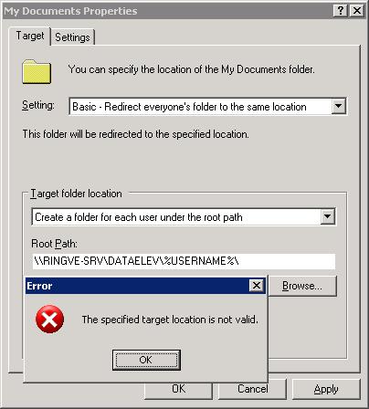 Kenny Bones Skrevet 8. juni 2005 Forfatter Skrevet 8. juni 2005 (endret) "The specified target is not valid" Legger med bilde også: På Novell-serveren har vi det sånn at elever kobles opp mot en mappe som heter "dataelev" På roten der ligger alle brukernavnene deres. Når de klikker på "mine dokumenter" vil jeg at den mappen som er lik brukernavnet skal komme opp. Altså Mine Dokumenter blir hjemmemappen deres. Ikke en annen mappe inni den originale mappen om du forstår. Jeg har jo kanskje kunnet gjøre det manuelt, men det er mange brukere og jeg kan ikke forstå hvordan dette kan være så inn i hampen vanskelig!? Endret 8. juni 2005 av raziel014