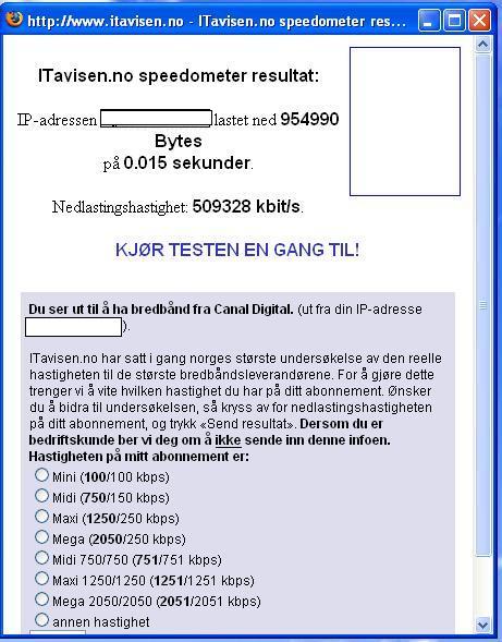 Jooakim Skrevet 5. juli 2005 Skrevet 5. juli 2005 Testen gir ikke spesielt gode resultater for hastigheter noe særlig over 2-3 Mb/s, ettersom feilmarginene blir større, og justeringer av operativsystem spiller en større rolle.