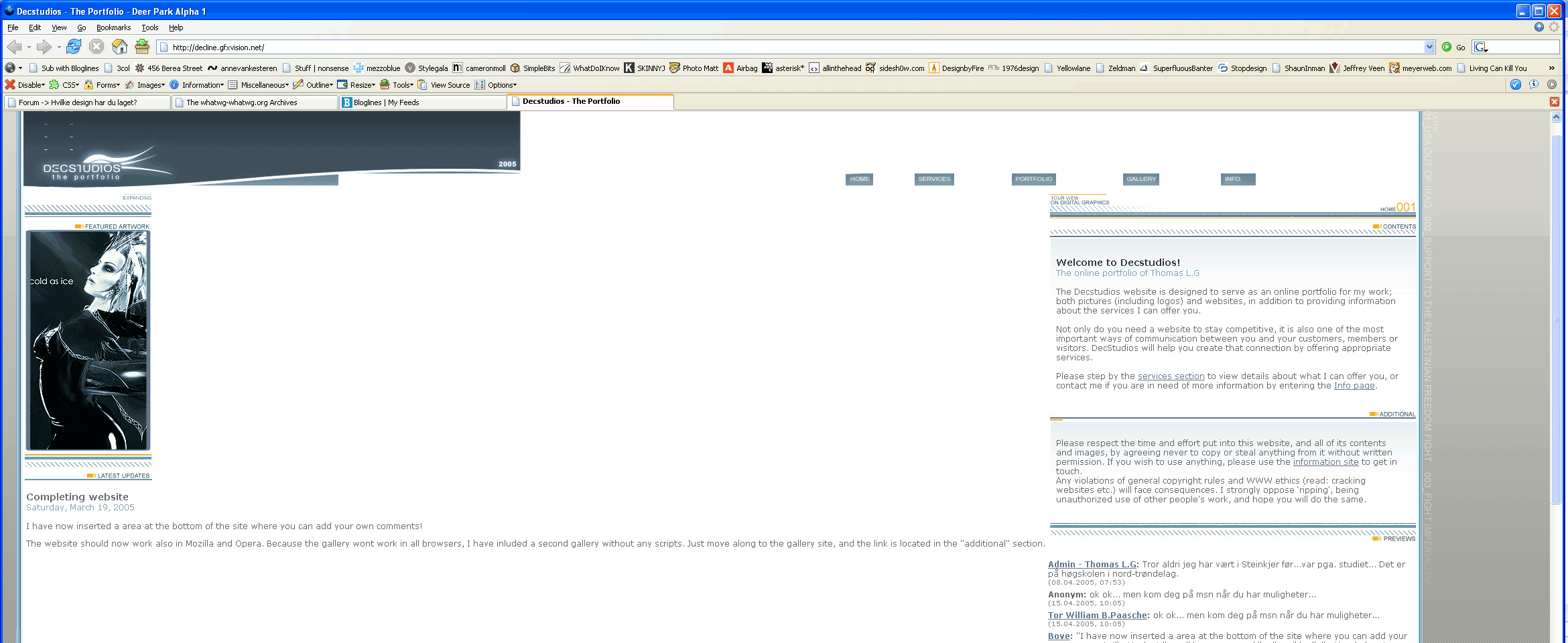 sfenne Skrevet 24. juli 2005 Skrevet 24. juli 2005 www.fettnerd.org www.shrty.net for portfolio min aller første hjemmeside, gid som vi alle digger fjortiser og iframe; http://home.no.net/sfenne01