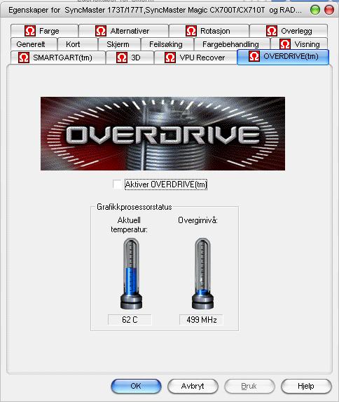 Deadringer Skrevet 11. juli 2005 Skrevet 11. juli 2005 høyreklikk -> egenskaper -> avansert -> overdrive. her vil du se riktig og nøyaktig temp.måling av kortet. sjekk den.