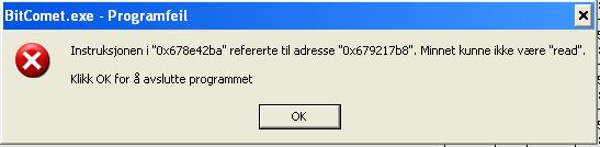 c-h-r-i-s Skrevet 22. juli 2005 Skrevet 22. juli 2005 Hei, Jeg innstallerte BitComet igår og startet og bruke det da, men nå for en 10 min siden har jeg startet og få feilmeldinger... kommer med ca 10 mins mellomrom... og jeg må lukke programmet... Slik ser feilmeldingen ut: