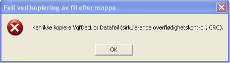 pmarius Skrevet 29. juli 2005 Skrevet 29. juli 2005 På grunn av denne ekstremt irriterende Sirkulerende overflødighetskontroll (CRC), så får jeg feilmeldinger nesten hver gang jeg skal kopiere noe fra DVDer og over til harddisken på maskinen min med WinXP Home. Problemet ser gjerne ut til å oppstå hvis det er store mapper med mange filer som skal kopieres. Ved kopiering av enkeltfiler skjer dette bare av og til. Da ser det ut som denne Sirkulerende overflødighetskontrollen plukker seg ut spesielle filer "den ikke liker", og nekter disse å kopieres. Andre filer er det liksom greit med. Det er ingenting i veien med de filene som ikke vil kopieres, de er verken korrupte, eller noen sikkerhetsrisiko. Noen som har vært borti dette? Og evt vet en løsning på hvordan jeg kan skru av møkka? Legger ved bilde av feilmeldinga: