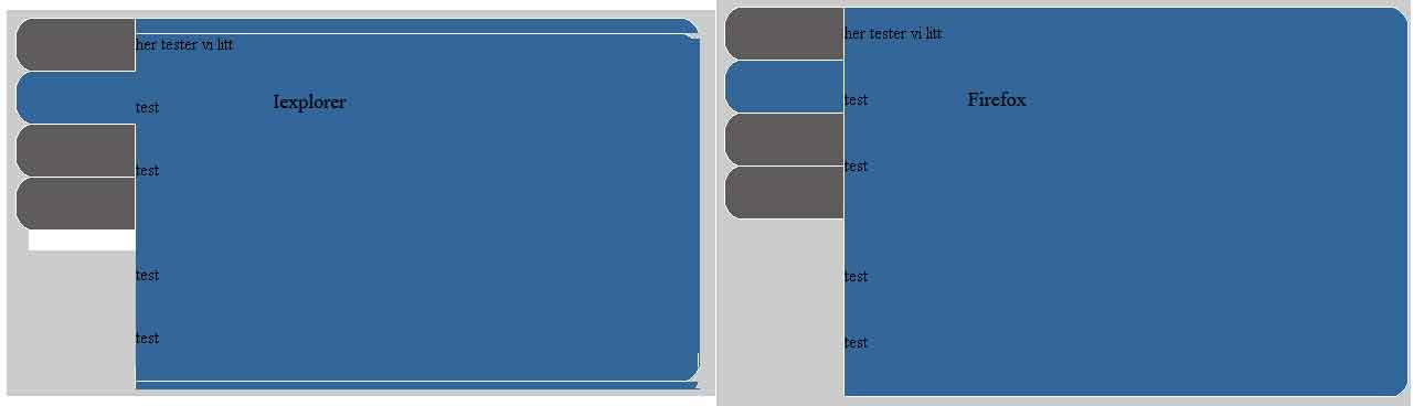 Dr3as Skrevet 18. august 2005 Skrevet 18. august 2005 Sitter å prøver å få opp en side her. Siden baserer seg på <div>tags og css som dette: .layer1 { position:absolute; left:50%; top:127px; width:980px; z-index:1; margin-left: -490px; } Noen som vet hvorfor dette blir så utrolig feil i iexplorer? Legger ved bilde av screenshot i iexplorer og FF
