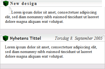 Amnio Skrevet 8. september 2005 Skrevet 8. september 2005 Har ei side der jeg har en header for hver nyhet. I denne headeren er det et gradientbilde som repeteres i bakgrunnen og en nyhetstittel på toppen. Jeg ønsker å utvide dette med avrundede hjørner, dato og et beskrivende ikon (varierer avhengig av nyhet), noe som medførte en del problemer. Se nedenfor for hvordan jeg hadde tenkt meg det. Det jeg altså lurer på er hvordan best implementere dette? Har testet litt med float, men fikk ikke helt dreisen på det da det er mange forskjellige elementer. Har altså alle elementene som skal settes sammen, men det er selve sammensettningen som streiker, noen tips? Siden lages i HTML 4.01 strict+CSS (uten tables)