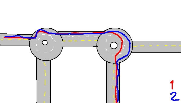 NoTrace Skrevet 24. juni 2009 Skrevet 24. juni 2009 Lurte på om noen kunne svare meg på hvilken av disse alternativene som er riktig? Selv tror jeg 1, men er veldig usikker. Noen som veit? Har oppkjøring i morra og veit jeg skal igjennom en rundkjøring som ser akkurat slik ut så trenger å vite det:S 1. er riktig. Skal du til siste avkjørsel i rundtkjøringen før du er helt rundt bruker man som regel innerste feltet. Kan være skiltet/malt anderledes tho... Huff ser nå hvor dårlig den tegningen var:P mellom rundkjøringene var det meningen at det skulle være to felt, samme kjøreretning:P sånn: (fortsatt 1 som er riktig?) (Sakl oppdatere på åssen det gikk i morra:D) Ingen av dem er da riktige. Du legger deg i så fall i høyre felt mellom rundkjøringene og holder deg inderst i rundkjøringen.