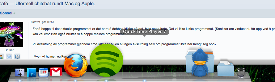 Runar Skrevet 14. juli 2010 Skrevet 14. juli 2010 Vil avslutning av programmer gjennom cmd+alt+esc bli en tvungen avslutning selv om programmet ikke har hengt seg opp? Jepp. Det er en grunn til at knappen man trykker på for å avslutte et program gjennom nevnte kommando heter "Force Quit" (på engelsk).