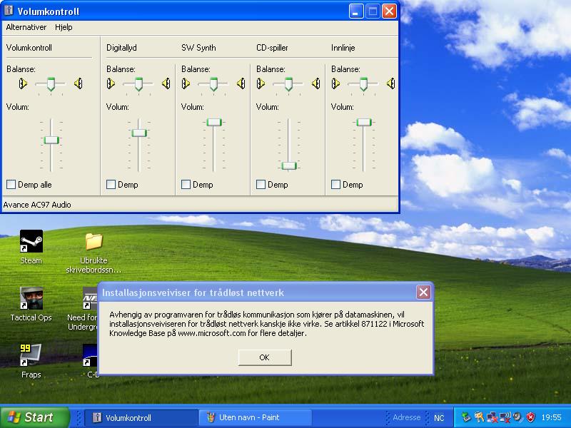 mr messenger Skrevet 29. oktober 2005 Forfatter Skrevet 29. oktober 2005 hvis jeg går på nettverksinnstillinger i kontrollpanel på pcen hans og egenskaper på trådløst nettverk, så får jeg bare opp generelt og avansert. Ikke Wirless network.