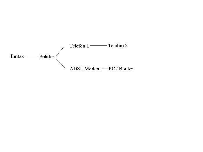 MSc Skrevet 8. november 2005 Skrevet 8. november 2005 (endret) Splitteren må inn før første telefonkontakt i huset (trolig den i første etasje) Forsøk på enkel tegning: ____________Telefon 1_________Telefon 2 Inntak ---- Splitter < ------------------ADSL modem ------ PC/Router Håper du forstår hva jeg mener. Tegningen ble litt rar når jeg postet. meningen var at linjene til Telefon og ADSL modem skulle ligge etter splitteren. ADSL.bmp Endret 8. november 2005 av MSc