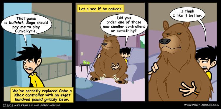 Klyde frog Skrevet 11. november 2005 Skrevet 11. november 2005 Jeg synes denne stripa illustrerer ganske godt størrelsen på X-box kontrollen. Kontrollen til PS2 er mye bedre synes jeg, mye mindre og nok knapper.
