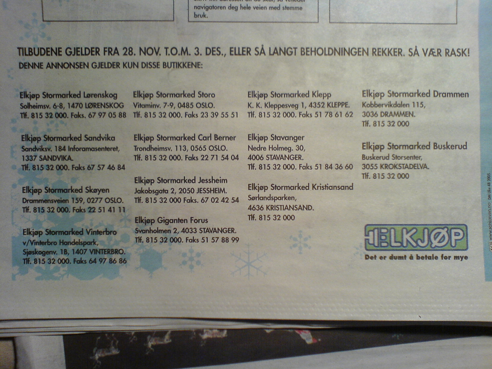 rulleguru Skrevet 28. november 2005 Skrevet 28. november 2005 De annonsene som sendes ut i osloområdet har bare oslobutikkene på baksiden