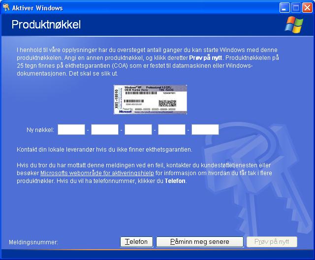 kcobain Skrevet 20. november 2005 Skrevet 20. november 2005 (endret) Hei, jeg skulle reinstallere XP idag kom det opp en rar melding når jeg skulle aktivere. Se vedlegg. Hva skal jeg gjøre? Har skrevet inn den som står på kabinettet. Endret 20. november 2005 av kcobain