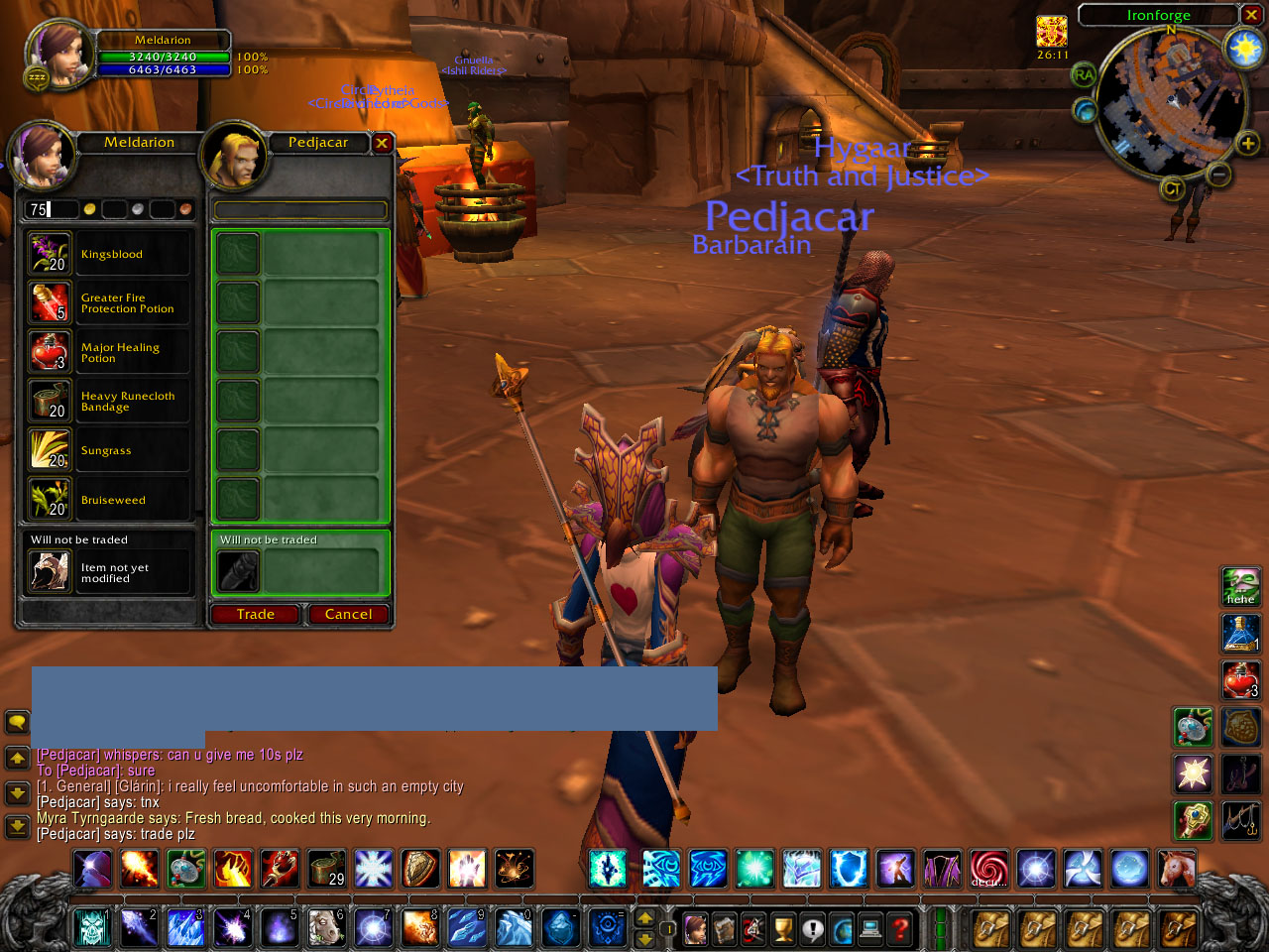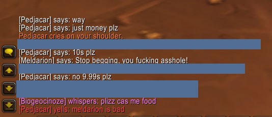OscarWoHA Skrevet 29. november 2005 Skrevet 29. november 2005 (endret) Skulle logge inn på Silvermoon nå nettopp. Som vanlig kommer folk og spør om vann, men i dag kom det en som ville ha penger i stedet. Jeg tullet litt med ham, og til slutt sier han /yell meldarion is bad! Jeg blir litt sint, og en fyr følger etter meg. Jeg vet ikke hvem det er, så spør hna om brød. Herregid, ser han ikke at folk maser på meg fra før i /s og /yell? Grrr.... Noen ganger blir jeg bare hissig. Når jeg lukker trade-vinduet sier han i tillegg "way" og åpner et nytt vindu. Jeg lukker det, og han åpner enda et... EDIT: Se det store bildet først. Deretter det lille (fortsettelse på chatten). Endret 29. november 2005 av CobraM