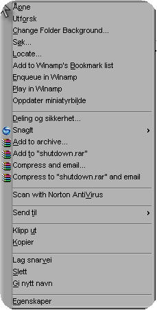 xanonymx Skrevet 10. desember 2005 Skrevet 10. desember 2005 Er ikke sikker på om dette er rett plassering, men tenke at jeg sikker må bruke et program. Hvordan kan redigere listen som kommer opp når jeg høyre klikke på en mappe/fil? Jeg synes den er litt lang og vil fjerne noen av alternativene.