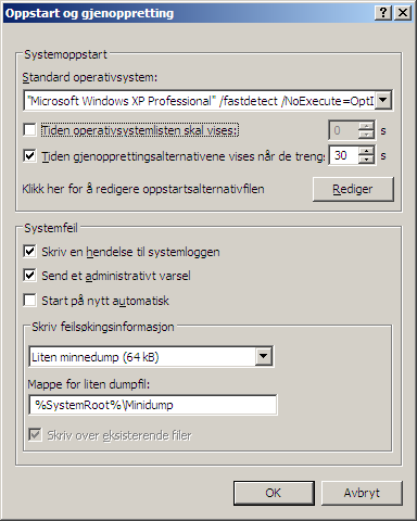 Mendel Skrevet 19. desember 2005 Skrevet 19. desember 2005 Høyreklikk Min Datamaskin - Egenskaper - Avansert - Oppstart og Gjenoppretting [instillinger] - Velg operativsystem som skal startes opp og ta vekk haken på Tiden operativsystemlisten skal vises. oppstart.bmp