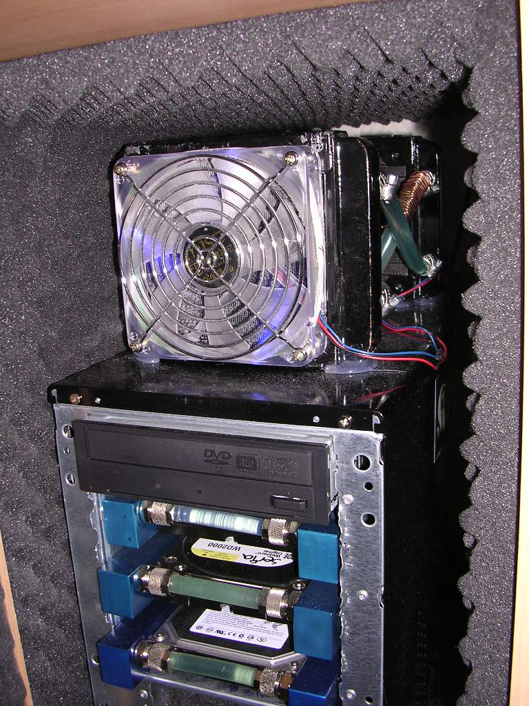 ahoo Skrevet 17. desember 2005 Skrevet 17. desember 2005 Har prøvdt masse rart for å få ein så stille som mulig pc, og har no endelig blitt fornøyd..Og dette er ein løysing eg kan anbefale på deg sterkeste! Byggde bare heile pcen (vannkj. alle komponenter utenom PSU) inn i eit skap og støyisolerte den med biltema dempings matter! Og no når eg lukker igjen døra,så hørrer eg den nesten ikkje i det heile! Har måtte montere radiatorene oppå pcen, for å få nok kjøling på dei og for å få den varme lufta ut bak..(opent bak).Og for å lett kunne slå på og av pcen,samt kontrollere tempen.. Så har eg montert inn lite lcd display med vanntemp og av/på.