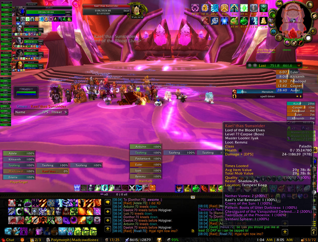 Jonas: Det er rotete..strever med å rydde opp, men midfight i raids er det mye der :p Det ser så enkelt å nifty ut når alle poster sine rene og pene UI, screenshotted på en bakketopp i solnedgang, men det er neimen ikke helt enkelt å få det like ryddig med tankframes, recap, omen, cooldown monitors, combattext, raidchat og millioner av warnings jeg ville daua hvis jeg ikke hadde :/