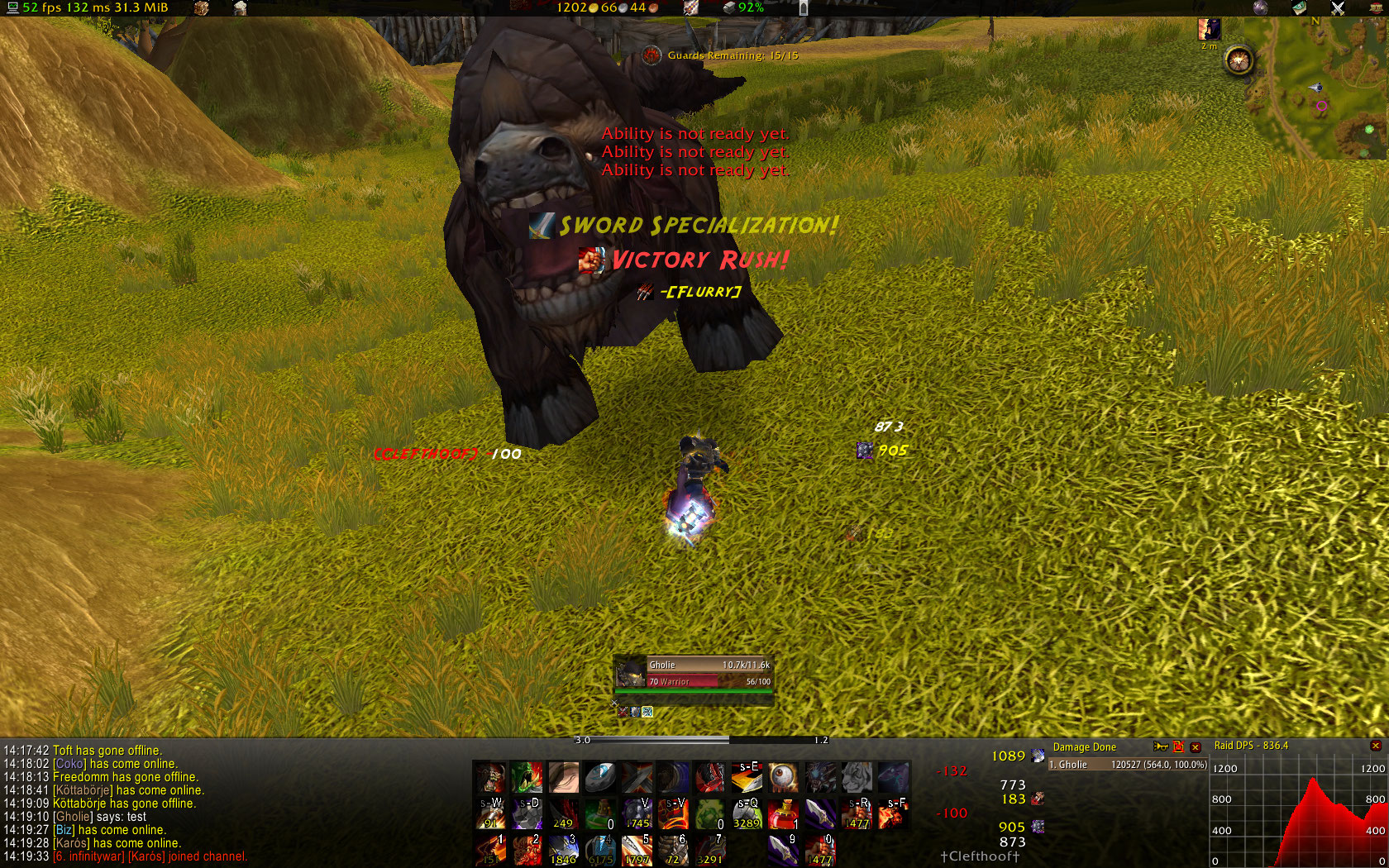 Moonshield Skrevet 31. mai 2008 Skrevet 31. mai 2008 (endret) KWI UI. Alt er ikke helt symmetrisk, vanskelig å få castpanels nøyaktig. :\ Edit: Ser FPS'en var skamlav, men det er fordi det lagger rett etter screenshot er tatt. :< Kjører vanligvis 30-40 i IF. Spitmacro er handy. Hvorfor kommenterer dere alltid det? Dessuten er han en horde.. Ja, og navnet hans begynner på J. See?? I can do that too!!! Uansett ser jeg ikke hva en macro har med hele interfacet å gjøre. Vi diskuterer jo UI's, og jeg bare la merke til det. Og han bruker jo standard UI, ikke noe å si på det uansett. : p Endret 31. mai 2008 av Moonshield