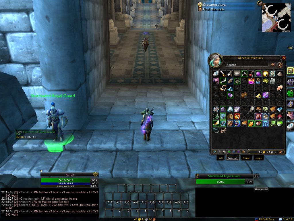 Sheel Skrevet 1. august 2008 Skrevet 1. august 2008 Her! Proximo (De fem barene mellom bags, menu og action-bars) vises bare i Arena. Ganske fornøyd med UI nå, hadde vel egentlig tenkt å spille uten noen addons, men det gikk ikke gitt.