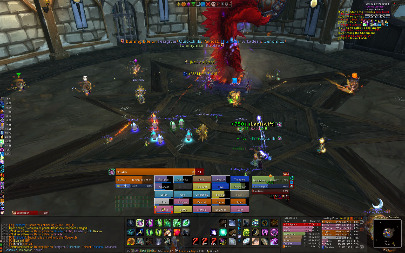 Kea Skrevet 23. oktober 2009 Skrevet 23. oktober 2009 (endret) Nå har jeg endelig et UI som jeg er fornøyd med. Etter en hel del dilling og styring riktignok Den ChatModen jeg likte best var faktisk PhanxChat. For Action Bars valgte jeg Dominos. Veldig grei og enkel å konfigurere. Jeg så etter en fin Buff-addon, men fant ingen jeg likte noe spesielt... Elkano's BuffBars var egentlig grei nok, men når det ser slik ut blir det litt for mye for min del. Endret 23. oktober 2009 av Therawyn