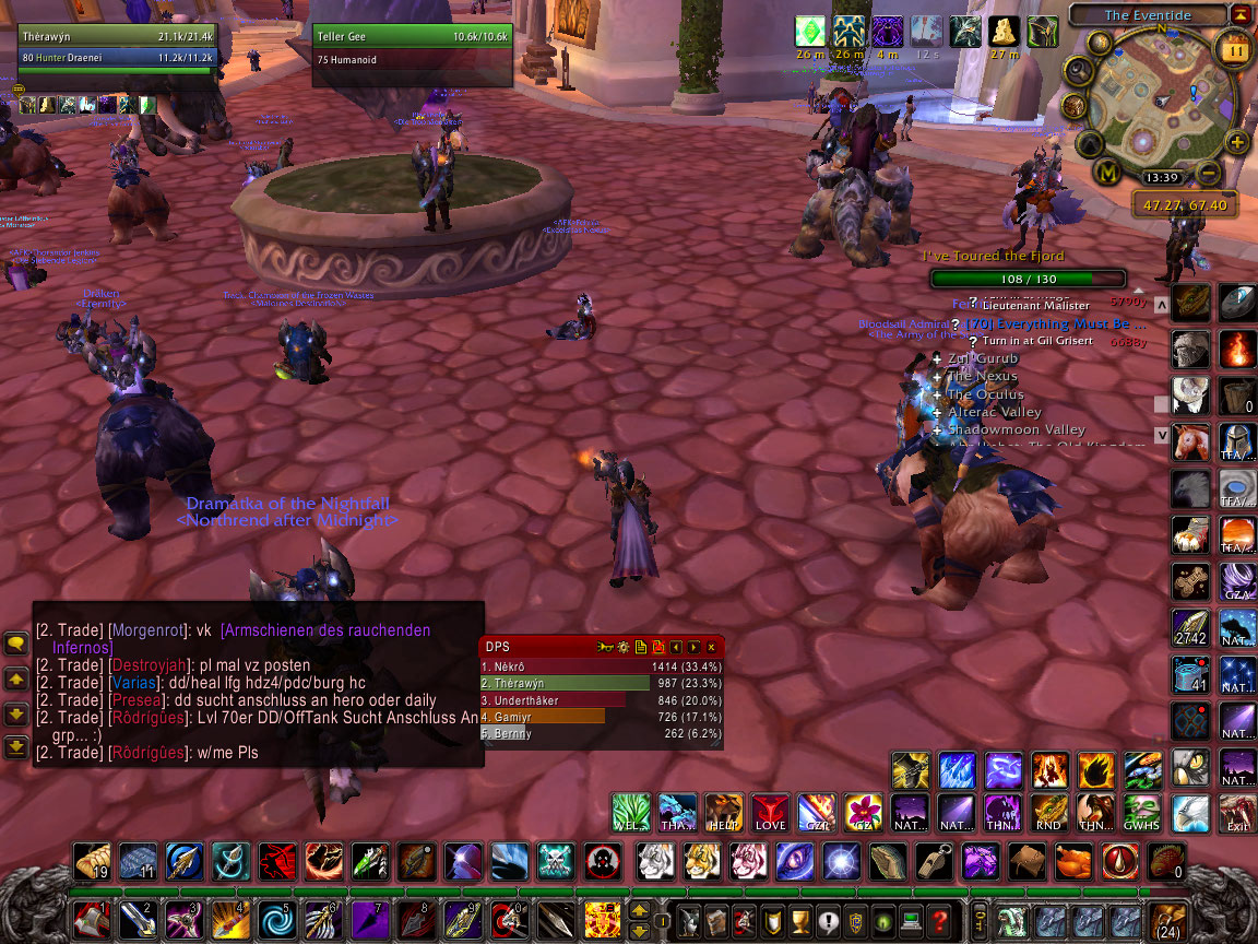 Kea Skrevet 24. oktober 2009 Skrevet 24. oktober 2009 (endret) Hva er greien med kartet oppe til høyre? Et snitt av world map pluss local map oppå (regner med det er local eller zone, alle ikonene gjør det umulig å se noe som helst), og i tillegg overlapper hele greien med både buffs og Action Bars. For meg ser det ut som om hele UI-en bare er default pitbull og bartender som har blitt flyttet litt på. Som buff AddOn ville jeg ha prøvd Bison da, med den kan du flytte buffs og skalere den som du vil. Minimapet i hjørnet er minimapet til Carbonite. Det ser bare så rotete ut fordi jeg zooma ut. Hadde jeg zooma litt mer inn, hadde du sett et detaljert kart av Dalaran. Nei, jeg bruker verken Pitbull eller Bartender. Jeg bruker AG_UnitFrames og Dominos. Tro du meg, det der er ikke et default UI. Det tok meg ca. 2 timer å få det til å se slik ut. Og forresten så overlapper ikke kartet vanligvis buffs, jeg bare dro det ut litt ekstra noen minutter tidligere for å sjekke noe. Slik så det ut før: Det måtte jeg bare endre på til slutt, for det var altfor rotete spør du meg. Og vanligvis så ser UI'et mitt nå for tida slik ut, med minimap og alt riktlig innstilt: Endret 24. oktober 2009 av Therawyn
