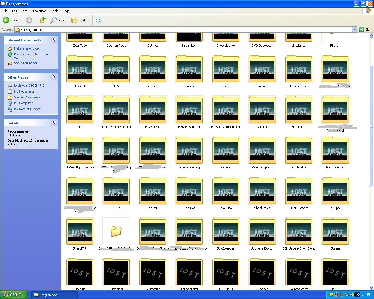 bearnar Skrevet 31. desember 2005 Skrevet 31. desember 2005 (endret) Hei! Jeg har hatt dette problemet gjentatte ganger på forskjellige installasjoner av windows, uten at jeg finner noen som helst logisk forklaring på problemet. Det har vanligvis pleid å løse seg med en format/reinstallasjon av windows, men når jeg nå nettopp gjorde dette og det fortsatt viser seg, begynner jeg virkelig å lure på hva det er!!.. Saken er, at jeg liker å legge bilder i samme mappe som en film / serie, for deretter å velge det bildet til å ligge oppå mappa (under customize). Det som skjer, er at noen ganger (ofte etter en lang stund) så blir ett av disse bildene visende på utrolig mange mapper som jeg aldri har satt noe bilde til (alle mapper i windowsmappa f.eks), når jeg har på thumbnail-visning. Se vedlagt bilde som eksempel. Dette er umulig å få fjernet, og det virker ikke som det er noen som helst logikk i hvorfor dette skjer! Har noen av dere erfart det samme? Kunne GODT vært foruten denne utrolig irriterende bugen.. Anyone? Endret 31. desember 2005 av bearnar