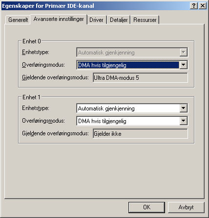 TEE Skrevet 6. januar 2006 Skrevet 6. januar 2006 Ta en kikk på enhetsbehandling og egenskaper for IDE kontrollere. Sjekk at det ser ut sånn som det gjør på det vedlagte bildet. Dersom spilleren bruke PIO-modus er det noe galt. Har sett en del tilfeller av hakking når man spiller film/musikk som skyldes akkurat det.