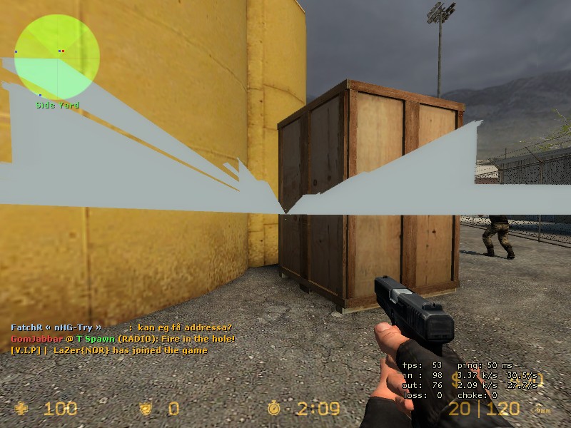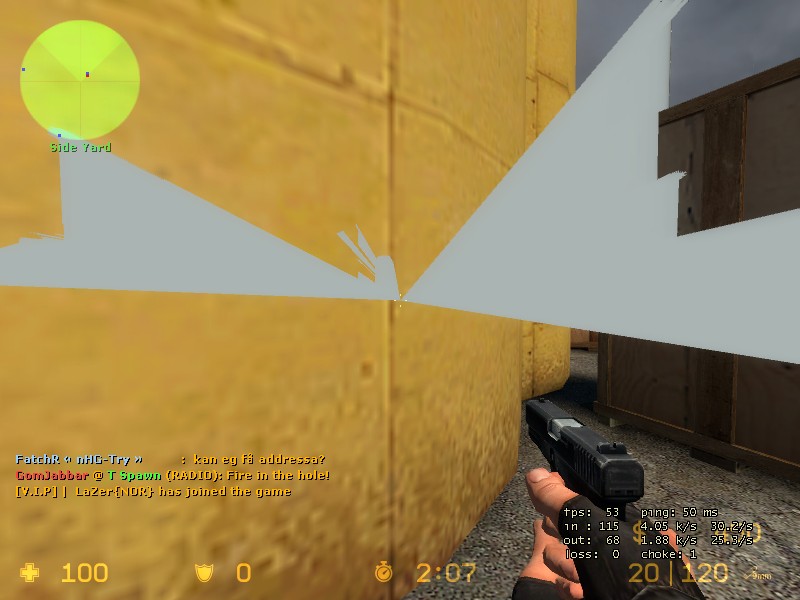 watchman Skrevet 11. januar 2006 Forfatter Skrevet 11. januar 2006 har nå tatt samples fra problemet mitt i Cs:Source, slik at dere får se hvordan det utvikler seg etter litt spilling. det dokker opp noen stråler, og disse kommer og forsvinner hele tiden etter litt spilling... vet noen hva dette kan være ?