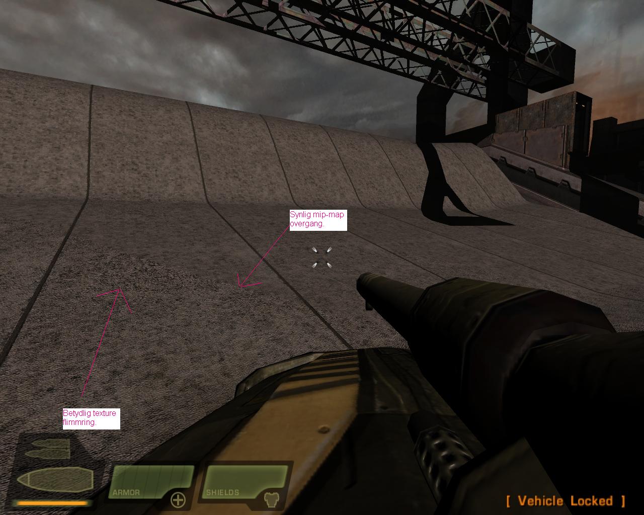 MistaPi Skrevet 13. januar 2006 Skrevet 13. januar 2006 (endret) Har du prøvd å kjøre med "High Quality" på image quality innstillingen i driveren? Dette hjelper en del. Men dette er et nokså kjent problem ja. http://www.3dcenter.org/artikel/g70_flimmern/index_e.php Blir spennende å se om det er noen forbedringer her med G71. ATi har selv yttligere redusert shimmering med X1x00 serien samtidig som dem har gitt mulighet til å kjøre vinkel uanhengig AF med sin nye high quality mode. Edit: Jeg tok selv et bilde som viser dette problemet med mitt 7800GT kort for en tid tilbake. Det er dog noe problematisk å se shimmering ut fra et stillbilde: Endret 13. januar 2006 av MistaPi