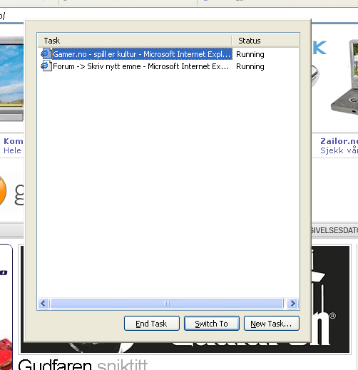 Hårek Skrevet 15. januar 2006 Skrevet 15. januar 2006 Task Manger problemet ditt er enkelt. Dobbelklikk på rammen så vises den normalt.