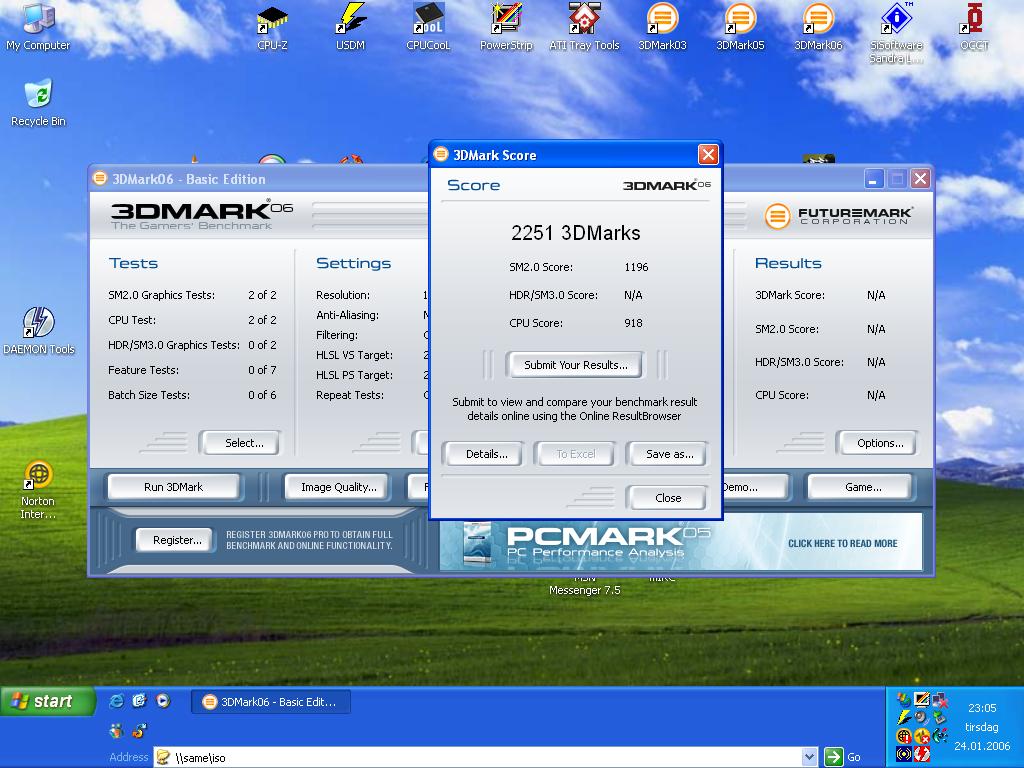 hemsedal Skrevet 24. januar 2006 Skrevet 24. januar 2006 Hemsedal - 2470 3dmarks - POV 6800GT@395/1080 - Barton 2500@1972Mhz Bra fornøyd med den scoren på en rigg som er snart er klar for museum
