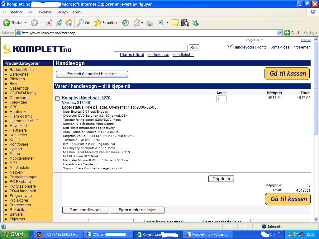 Jowy Skrevet 31. januar 2006 Skrevet 31. januar 2006 (endret) Jeg har søkt lenge etter en bra bærbar som passer for lommeboka, i den anledning kom jeg over dette utrolige tilbudet. Prisen på totalen er rundt 4700. Problemet er midlertidig at det står ikke barebook på den bestillingen. Så rent teoretisk... tror dere at jeg hadde fått den laptopen, eller hadde Komplett sendt delene hver for seg? Det som gjør at jeg stusser, er at navnet på produktet er jo Komplett Notebook S270. Hehe, er egentlig bare fryktelig nesgjerrig på om jeg hadde fått meg fin laptop til en slik billig peng! Endret 31. januar 2006 av Jowy