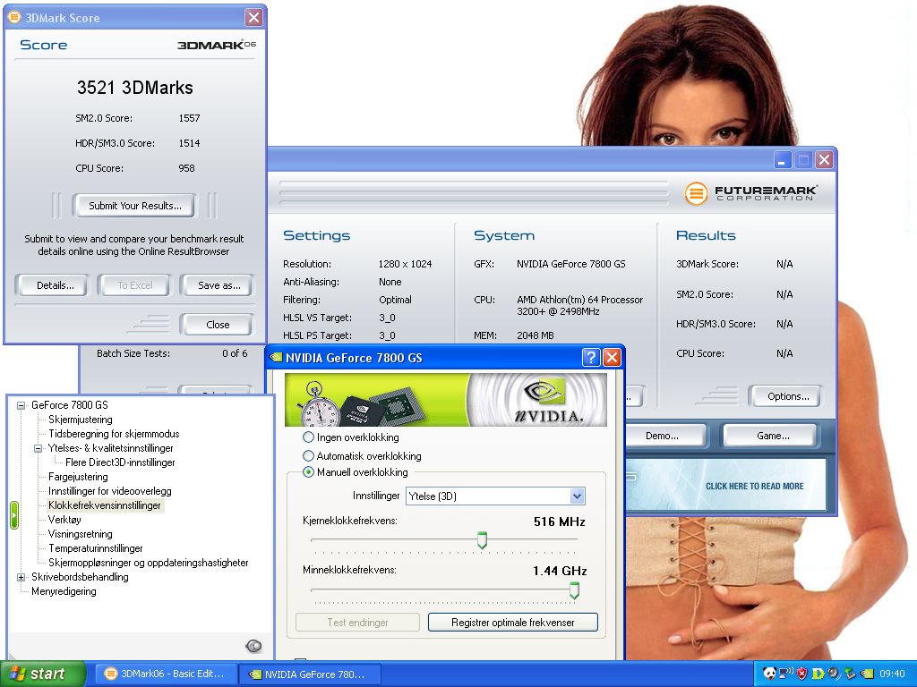 Vod kaNockers Skrevet 6. mars 2006 Skrevet 6. mars 2006 Ser det er mange her som har skaffa seg et 7800gs.Jeg har leita på produsentenes hjemmesider og finner ikke ut hva slags bundle som følger med, så jeg lurte på om noen her kunne skrive inn hva de fikk i bundle av de forskjellige produsentene? (XFX, Club3d, POV osv) Takker 5709874[/snapback] Edit...slettet så ikke at prostoman la ut samme svar som meg Prostoman hva får du i score på benchmarks med de OC instillingene dine? Ciao 5710999[/snapback] Det høyeste score jeg har hatt var denne som du ser på bildet, la den også ut på 3Dmark06 tråden for en stund siden. Det var før jeg fant måte å klokke minnet til over 1500 med originale verktøy. Alle forsøkene etter det endte med blackscreen Jeg klarer å kjøre minnet på 1550, men core vil ikke kjøre noe høyere enn 500 uten at jeg får blackscreen. Jeg har nå flere steder i favorittene mine hvor jeg følger med på eventuelle måter å øke volten på core fra 1,4 til 1,5 (uten loddebolten fordi jeg har ikke verken den eller noen gode skills).