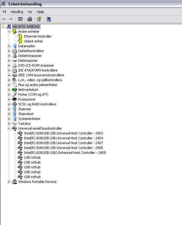 nahojdat Skrevet 1. april 2006 Skrevet 1. april 2006 (endret) Edit oppe.. Det er ihvertfall ett nettverkskort som ikke er installert der, den ukjente enheten er ikke lett å si hva er.. Prøv å oppdatere driverne til begge (høyreklikk på dem og velg oppdater driver).. Edit: det er jo USB2 host controller på maskinen, så driverne skal være ok.. Endret 1. april 2006 av nahojdat