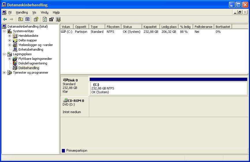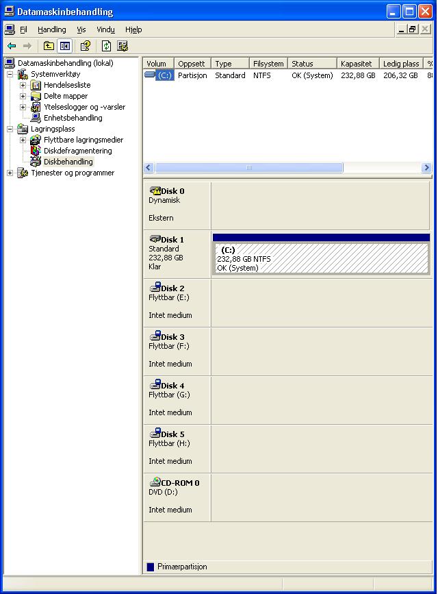 Giro Skrevet 24. mars 2006 Forfatter Skrevet 24. mars 2006 høgre klikk på min datamaskin, gå på behandle..så diskbehandling=) finn disken der, og så ser du kanskje kva du kan gjere 5804187[/snapback] Ser disken der men den kommer opp som ekstern?? Når jeg høyre klikker på den får jeg følgende valg: Konverter til standard disk Egenskaper Hjelp (Hvordan får jeg tatt bilde av skjermen og lagt ved??)