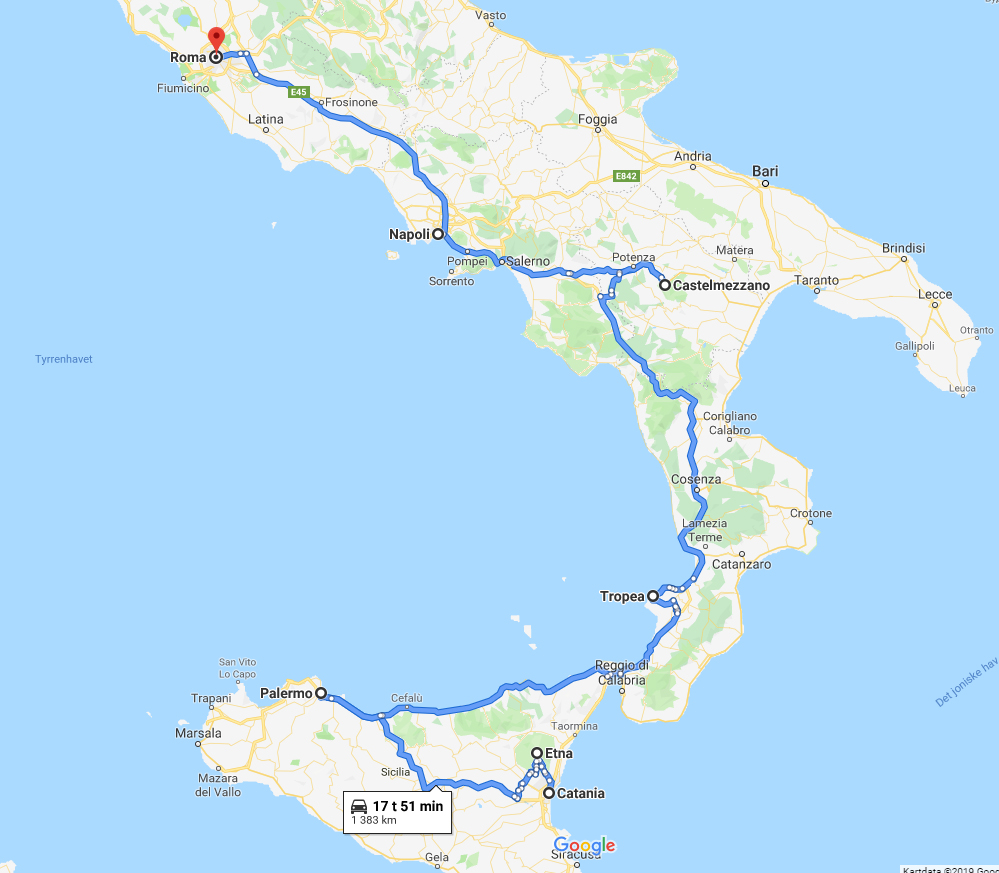 Gjest Slettet-QjT4b9 Skrevet 6. mai 2019 Skrevet 6. mai 2019 Her er ruta jeg har tenkt meg til. Blir to netter i Palermo, Napoli og Roma, den siste i Roma bli bare for å komme seg med flyet, så ikke mye tid den dagen.