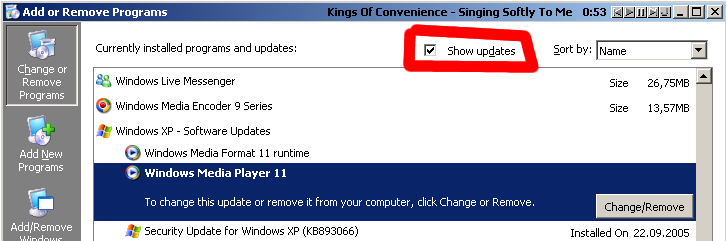 Torbjørn T. Skrevet 3. august 2006 Skrevet 3. august 2006 Hjå meg er WMP11 lista i Legg til/fjerne programmer. Den ligg som ei oppdatering, so eg må hake av for Show updates øvst. Ligg den ikkje der hjå deg?