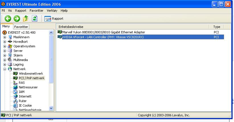 m0g1e Skrevet 7. mai 2006 Skrevet 7. mai 2006 (endret) Windows x64 finner ikke Nvidia-nettverkskortet som er integrert i mitt hk (se signaturen) Det står ingenting i Enhetsbehandling/Device manager om dette nettverkskortet, men Everest Ultimate edition 2.5 finner det: Antar at det er noe med x64 versjonen, men har noen andre noen tips? Har prøvd å installere drivere men de finner jo selvsagt ikke hardwaren... Edit1: Om noen finenr driverer til dette utenom DFI sine sider så hadde det vært fint. Endret 7. mai 2006 av nollie