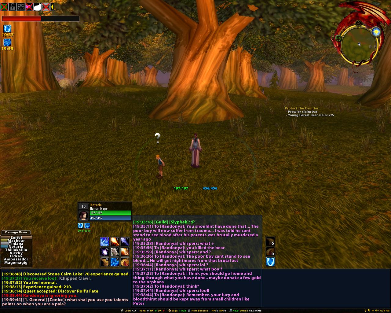 John Keats Skrevet 13. mai 2006 Skrevet 13. mai 2006 Satt litt her med magen min og tenkte at jeg skulle gjøre spillopplevelsen min litt morsommere ved å rollespille... Folk er tydeligvis ikke like villige til rollespill på en PvP-server... Dette skjedde... Jeg går i skogen med Orphanen min som jeg har navngitt Peter.. En rogue løper fram og ambusher en stakkars bjørn som leter etter mat..