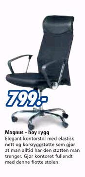 B4stian Skrevet 21. mai 2006 Forfatter Skrevet 21. mai 2006 Takk for tilbud, men er det noen som har bilde og pris av de dere anbefaler? Vil liksom ha en skikkelig en, og høy rygg er et stort pluss.