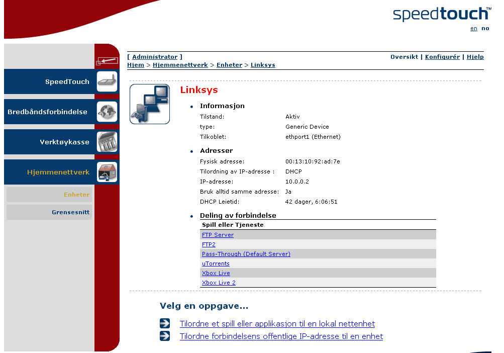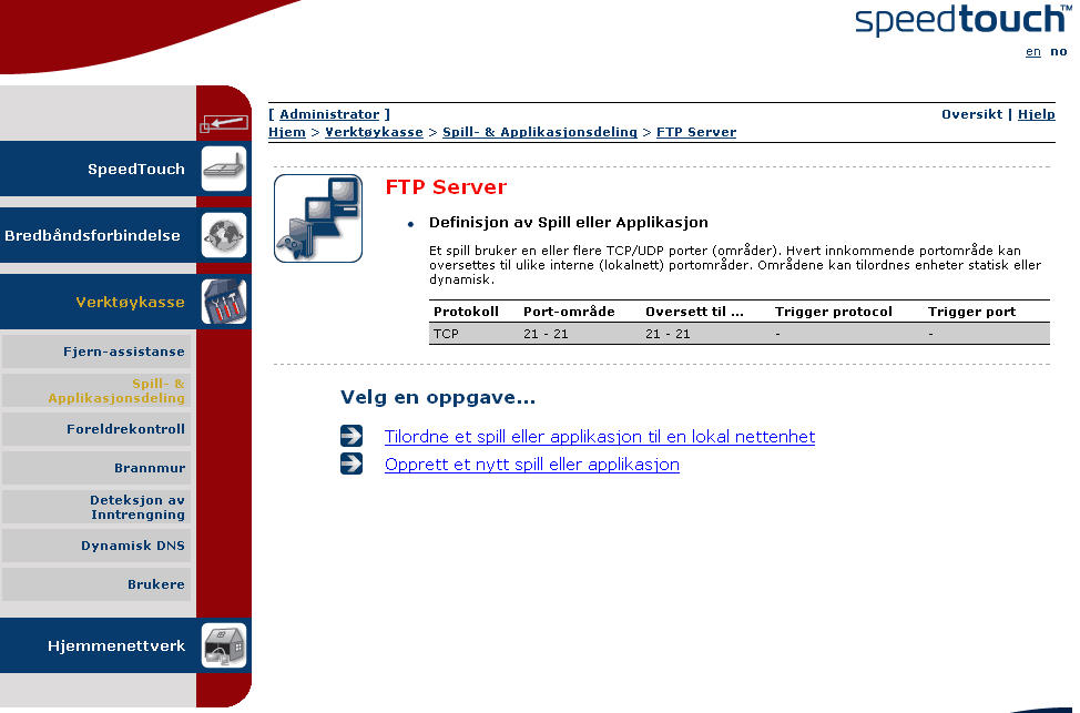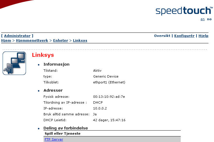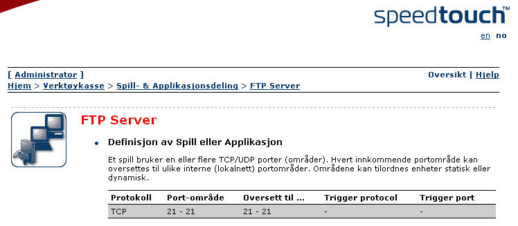 Sette opp FTP med Linksys og SpeedTouch