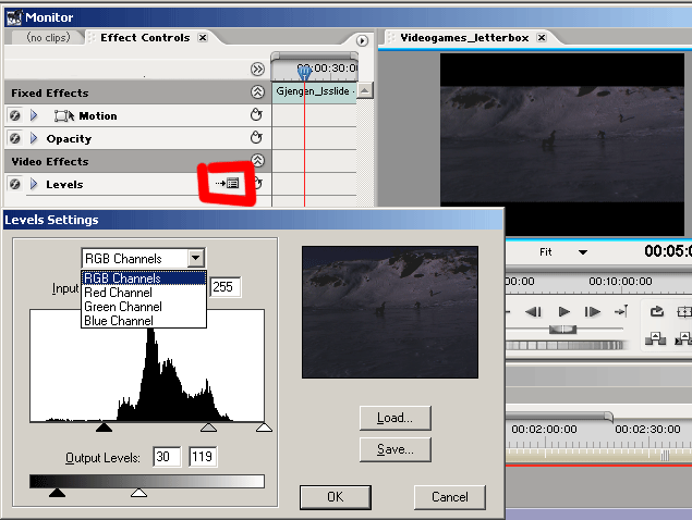 Torbjørn T. Skrevet 28. juni 2006 Skrevet 28. juni 2006 Du kan prøve med Levels. Juster både output level og input levels, og prøv deg fram med ulike verdiar. Vil du gje videoen eit fargeskjær, t.d. blått, juster blåkanalen for seg, i tillegg til RGB. Eit lite tips for å gjere justeringa enklare, er å trykke på Setup, då får du opp histogrammet, slik som på biletet: