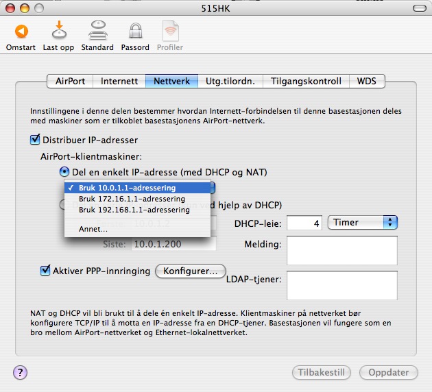 airporten er stilt inn slik at den gir ut 10.0.0.x IP'er da resten